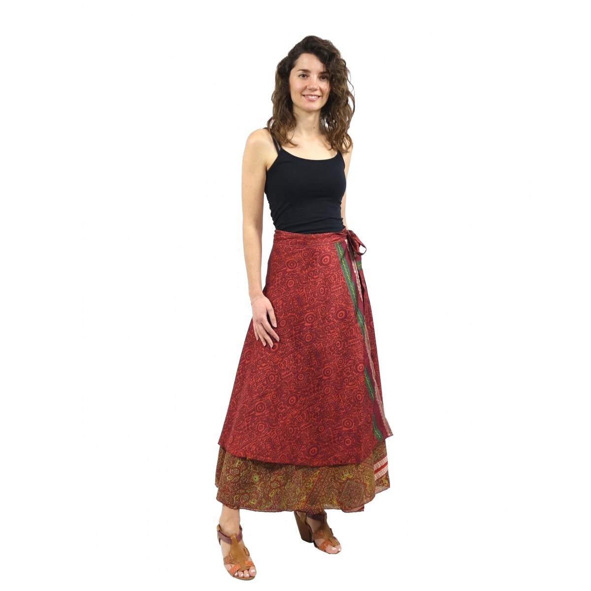 Chaque jupe est unique, différents motifs de soie indienne